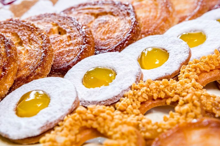 Assortit de pastissería clàssica de mantega amb combinacions de flamets, bunyols, discos de taroinja etc...