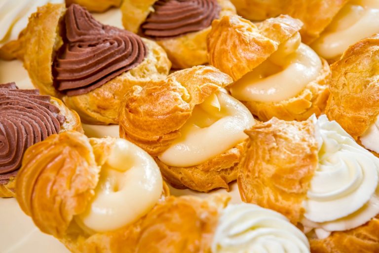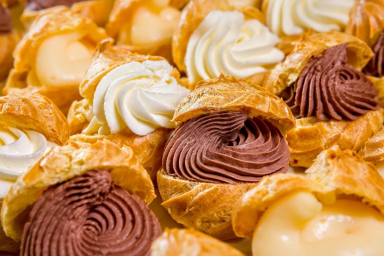 Peces de crema, nata i trufa. Bunyols de Quaresma de vent o de l'Ampurdà farcits de crema o xocolata